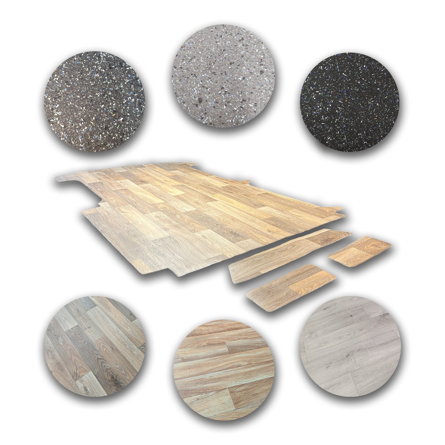 Our vinyl flooring range includes wood effect, and speckle effect all our flooring has protective & anti slip addative.